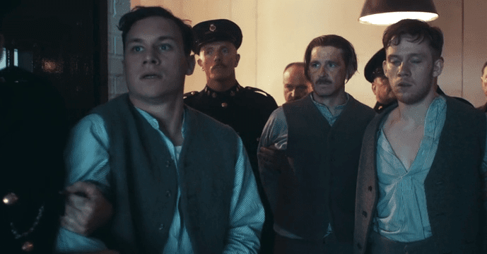 After a recap of what happened at the end of series 3, with the arrest of Arthur Shelby, John Shelby, Polly Gray, and Michael Gray. Next, Arthur, John, and Michael are pulled from their prison cells at Winson Green Prison and led to a room containing three nooses.
