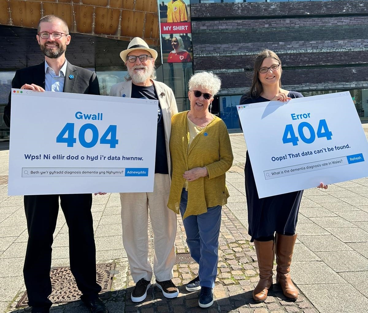 John and Sarah Bennett-Green who live in Swansea joined the Alzheimer’s Society Cymru team in Cardiff to display ‘Error 404’ placards highlighting the lack of diagnosis data in Wales. John lost his father to dementia and Sarah lost her mother.