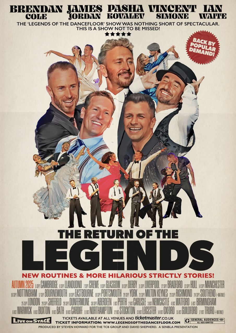 Following their smash hit sell-out tour Legends of The Dance Floor in 2024, Strictly Come Dancing legends Brendan Cole, James Jordan, Pasha Kovalev, Vincent Simone and Ian Waite have announced an even bigger tour for 2025: The Return Of The Legends.