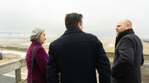 Wales Office Minister Dame Nia Griffith with Jan-Jaap Cramer, CEO of the Port of Vordingborg and Mikael Smed, Mayor of Vordingborg