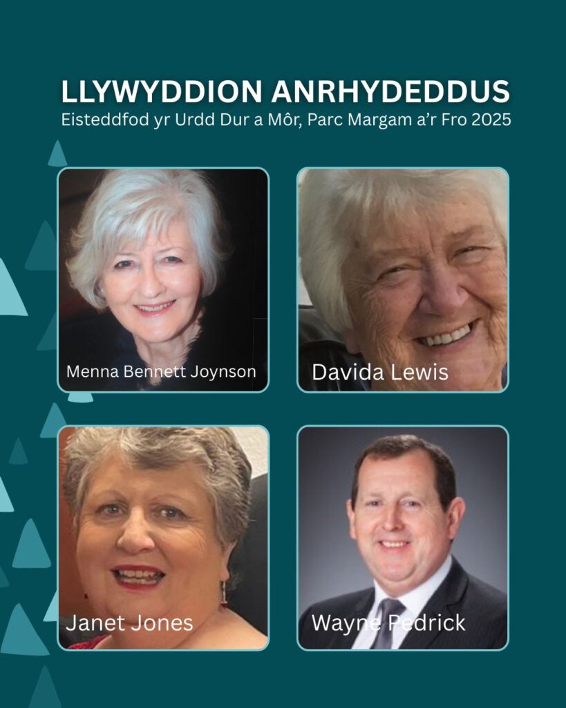 Bob blwyddyn fe anrhydeddir unigolion sydd wedi gwneud cyfraniad arbennig i’r Urdd. Eleni, tro rhanbarth Gorllewin Morgannwg yw hi a bydd pedwar gwirfoddolwr yn derbyn teitl Llywyddion Anrhydeddus Eisteddfod yr Urdd 2025 mewn seremoni arbennig ar faes yr ŵyl.