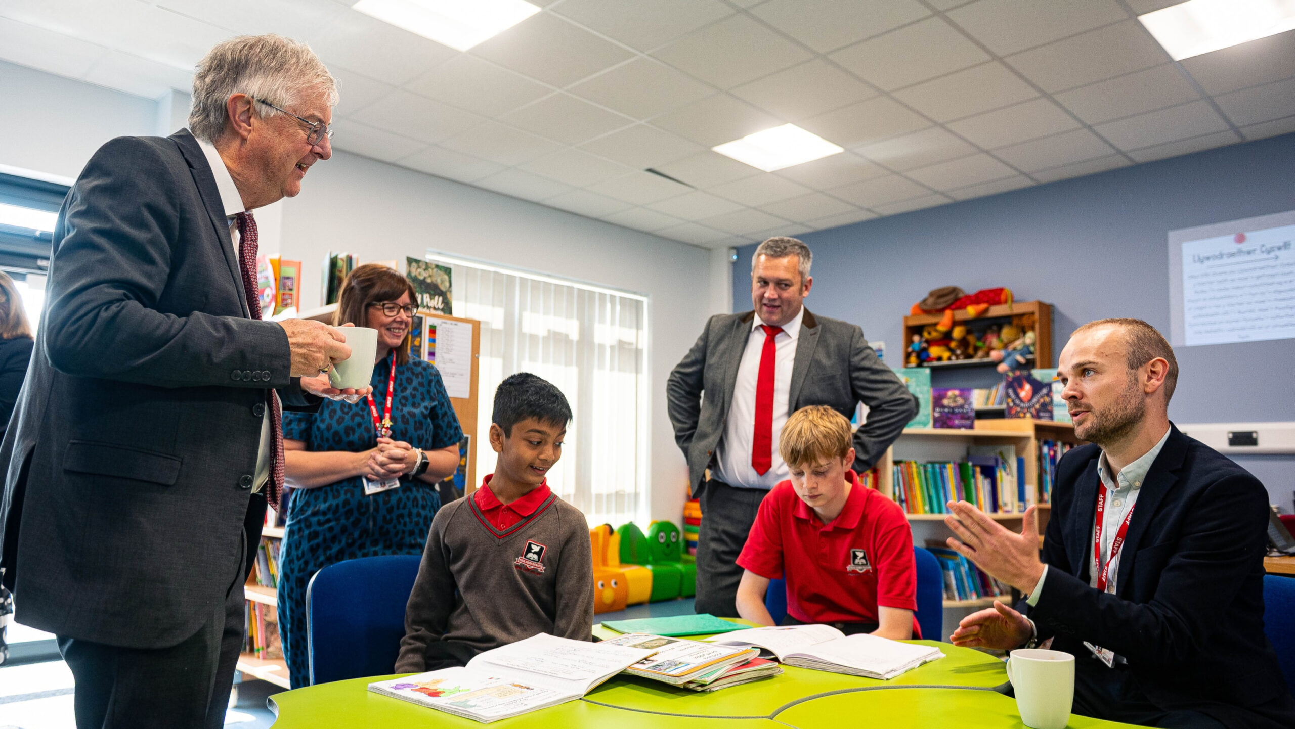 Bu Ysgrifennydd y Gymraeg, Mark Drakeford, ar ymweliad ag Ysgol Henry Richard yn Nhregaron, a chanmolodd y cynnydd y mae wedi’i wnaed tuag at addysg cyfrwng Cymraeg.