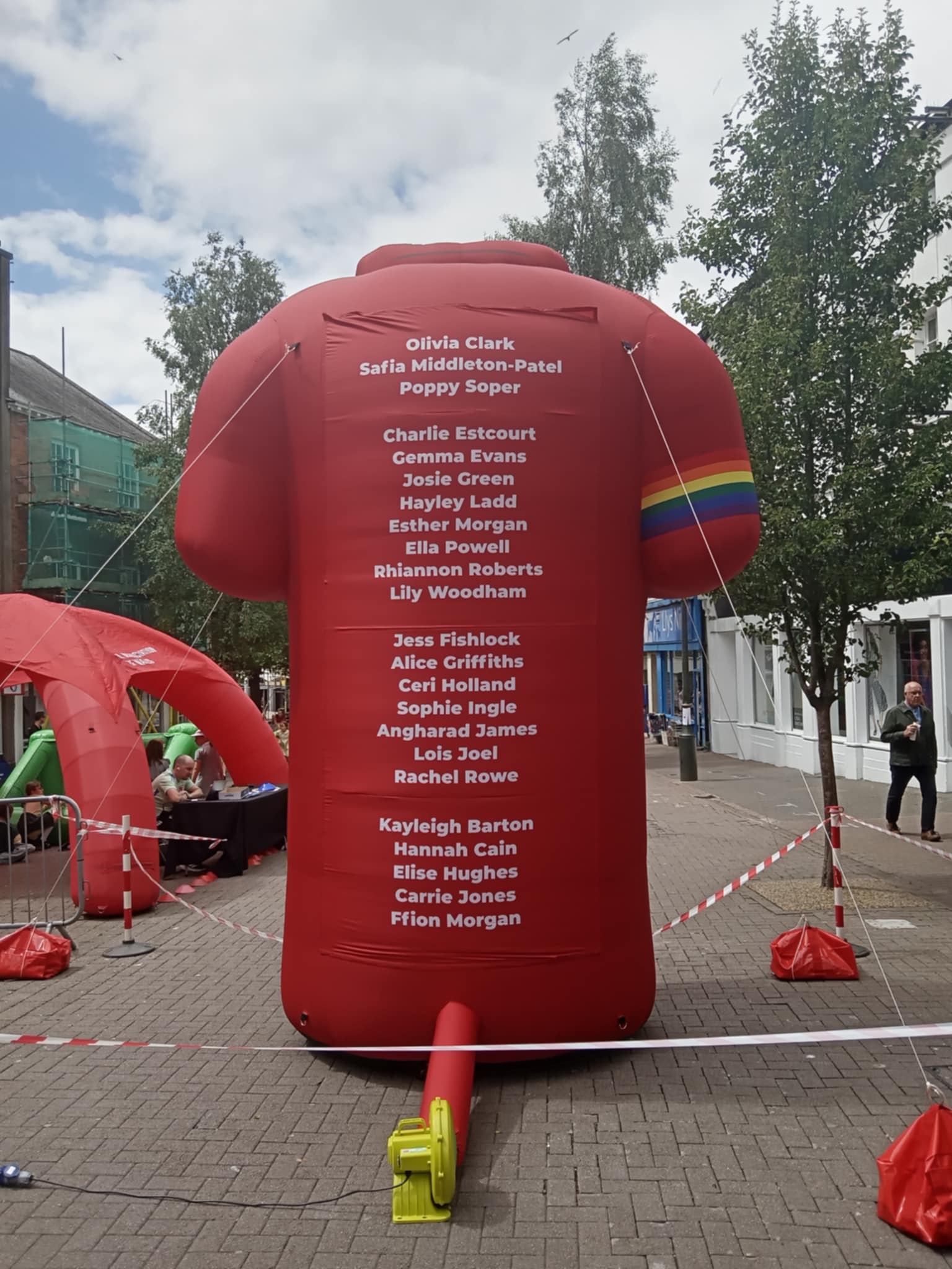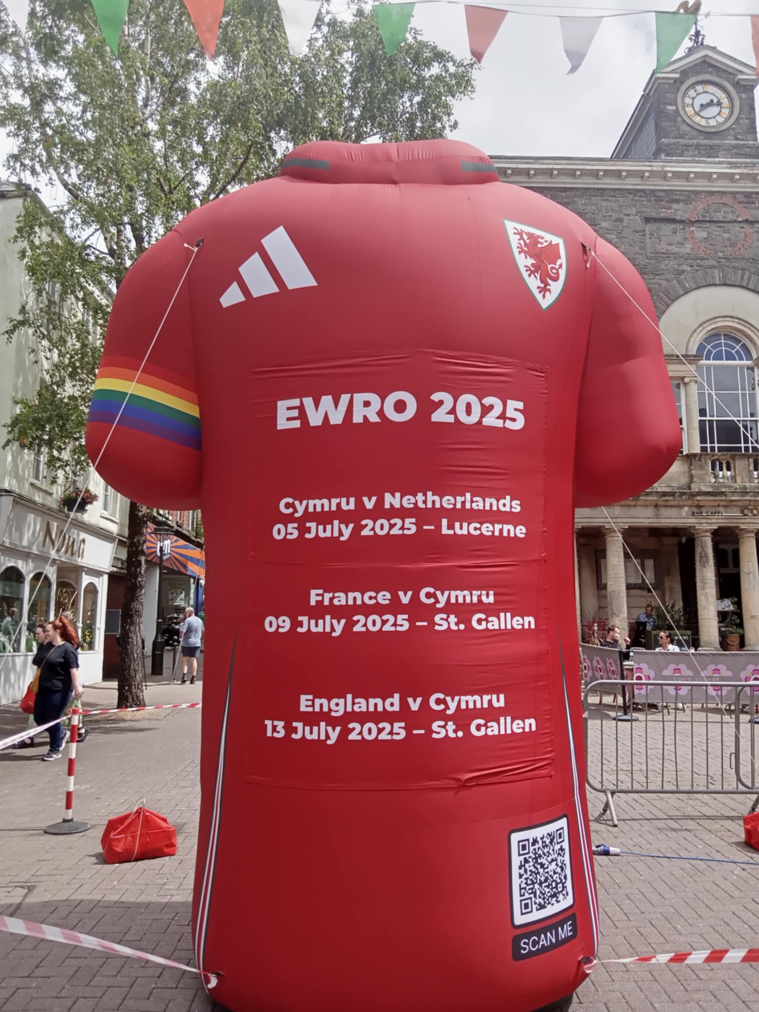 The 4-metre tall inflatable shirt is a bold and unmissable symbol of Welsh pride, featuring the words “EWRO 2025”, the group stage fixtures on the front, and the full official squad list on the back — unveiled last week at the summit of Yr Wyddfa to launch the nationwide tour.