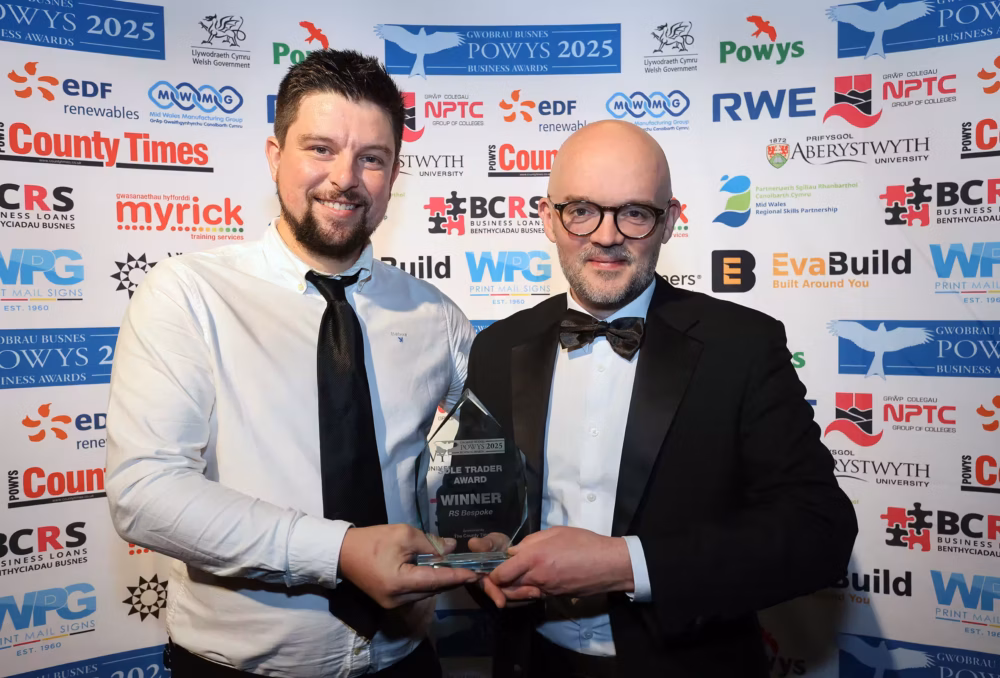 This was the reaction of Ryan Swain, owner of RS Bespoke Joinery, Llansantffraid, after winning the Sole Trader Award, sponsored by The County Times, at this year’s prestigious Powys Business Awards held at The Hafren, Newtown last Friday.