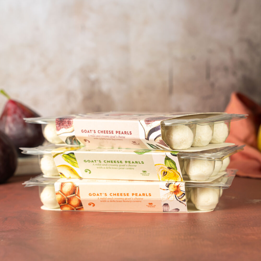 ‘n dangos ansawdd y bwyd a’r diod sydd ar gael yng Nghymru. Mae ein Perlau Caws Gafr wedi cael derbyniad anhygoel o dda, ac maen nhw bellach ar gael yn Selfridges a nifer o leoedd eraill.