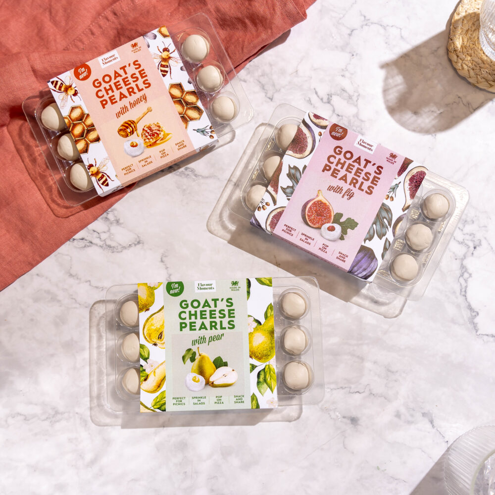 Dechreuodd Flavour Moments fasnachu ddechrau 2025 ar ôl blynyddoedd o waith y tu ôl i’r llenni gan y sylfaenydd, Philippa, ac mae wedi tyfu i fod yn frand sy’n barod i’w fanwerthu, sydd bellach yn cael ei stocio mewn delis, siopau fferm ac yn fwyaf diweddar, Selfridges. Mae eu detholiad arobryn yn cynnwys Perlau Caws Gafr wedi’u llenwi’n ysgafn â ffigys, mêl a gellyg, wedi’u cynllunio i gyfoethogi popeth o saladau a pizzas i fyrddau caws, canapés a phicnic. Yn fwy diweddar, lansiwyd blasau llugaeron, tryffl a mêl ar gyfer y Nadolig. Dywedodd Philippa Galway, Rheolwr Gyfarwyddwr Flavour Moments: