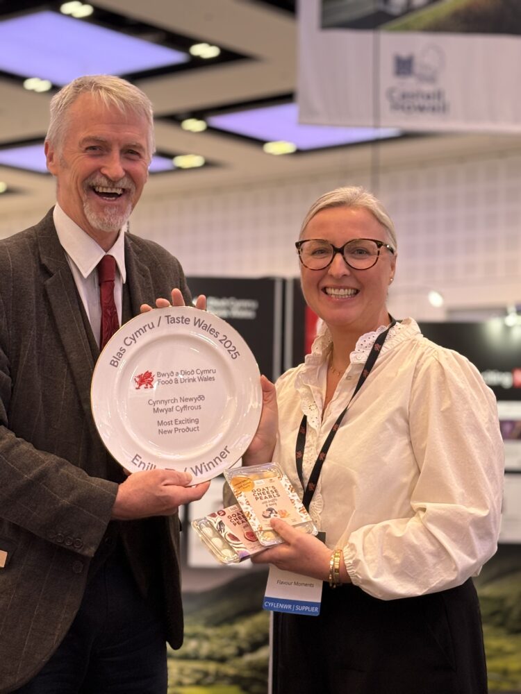 Roedd y digwyddiad hefyd yn dathlu arloesedd gyda’r Wobr Cynnyrch Newydd, a aeth i Flavour Moments, busnes bwyd newydd o’r gogledd sy’n adnabyddus am ei Berlau Caws Gafr.