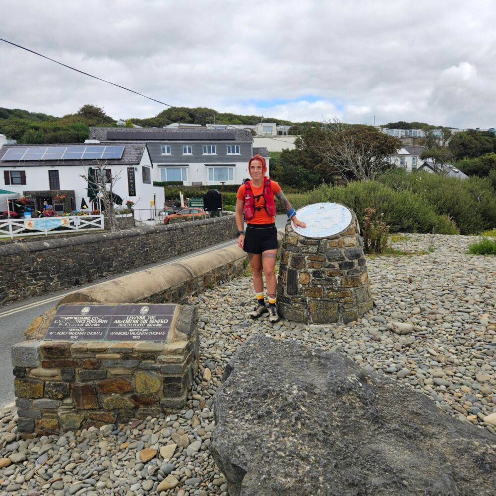 Sanna Duthie yn torri record am redeg ar hyd yr arfordir – gwyliwch ar-lein
