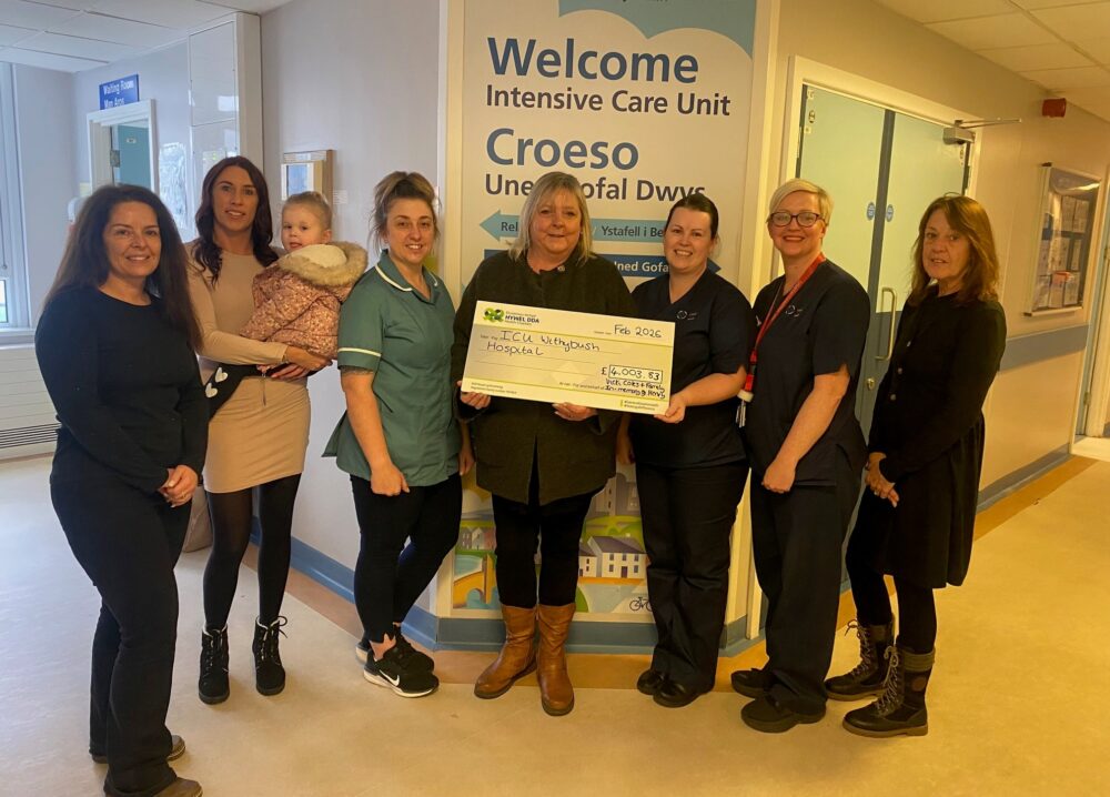 Dywedodd Kim Goodall, Uwch Brif Nyrs: “Diolch yn fawr iawn i Vicki a phawb a oedd yn rhan o hyn am helpu i godi’r swm anhygoel o £4,000 yn 2025 ar gyfer yr Uned Gofal Dwys. Mae hwn yn deyrnged wych i Henry. Derbynnir yr arian yn ddiolchgar a bydd yn gwneud gwahaniaeth ystyrlon i’n gwaith ar yr uned. Diolch!”