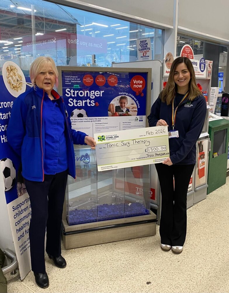 Mae’n bleser gan Elusennau Iechyd Hywel Dda, elusen swyddogol Bwrdd Iechyd Hywel Dda, gyhoeddi bod grant o £1,500 gan Cychwyn Cryfach Tesco wedi ariannu cwrs therapi syrffio ar gyfer pobl ifanc â heriau iechyd meddwl.