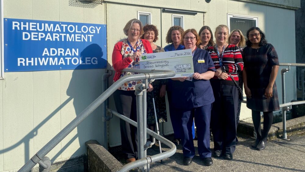 “Mae Gwasanaeth Rhiwmatoleg wedi gofalu am genedlaethau lawer o fy nheulu dros y blynyddoedd, ac roeddwn i eisiau ceisio rhoi rhywbeth yn ôl i helpu’r tîm a’r cleifion mae’n nhw’n eu gwasanaethu.